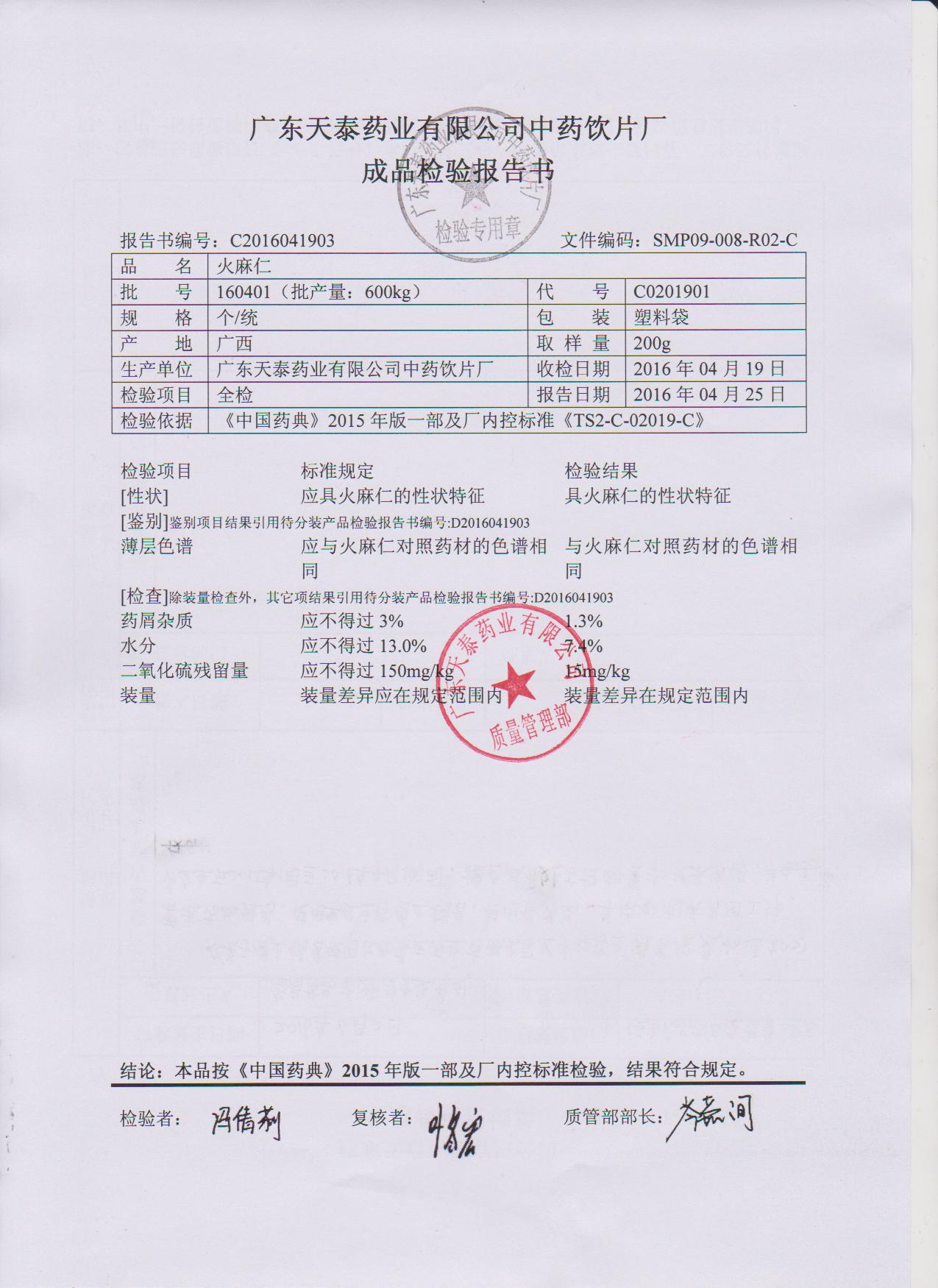 药检报告