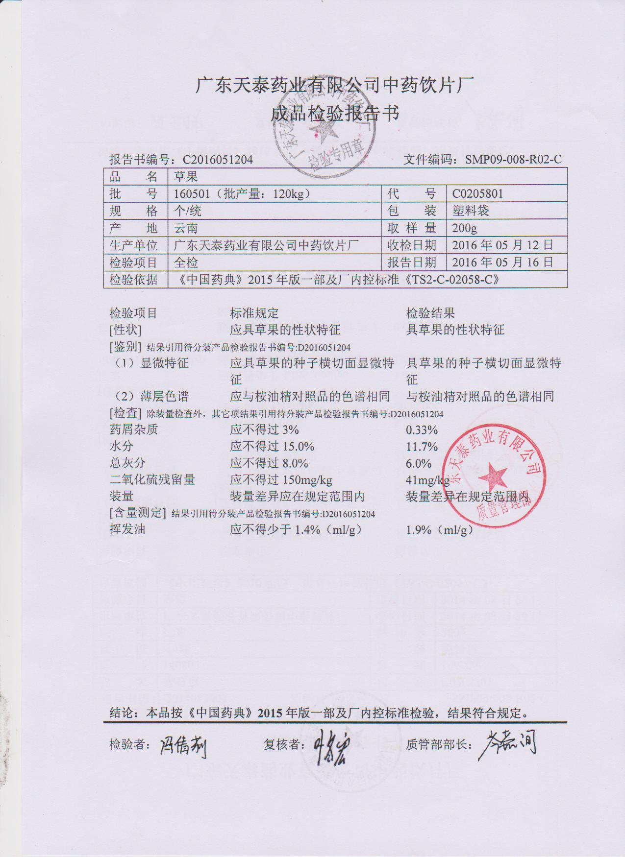 药检报告