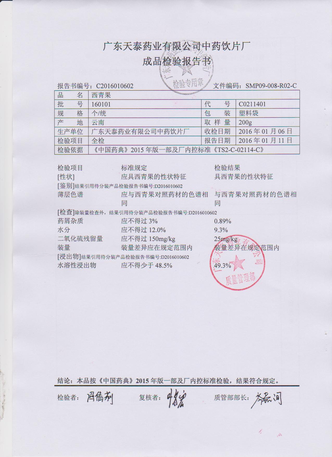 药检报告