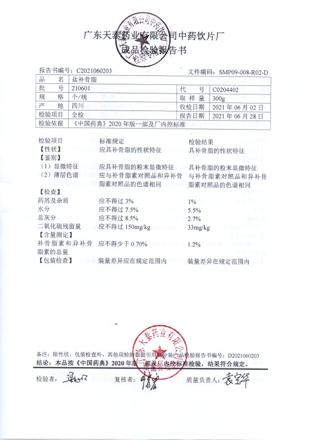 药检报告