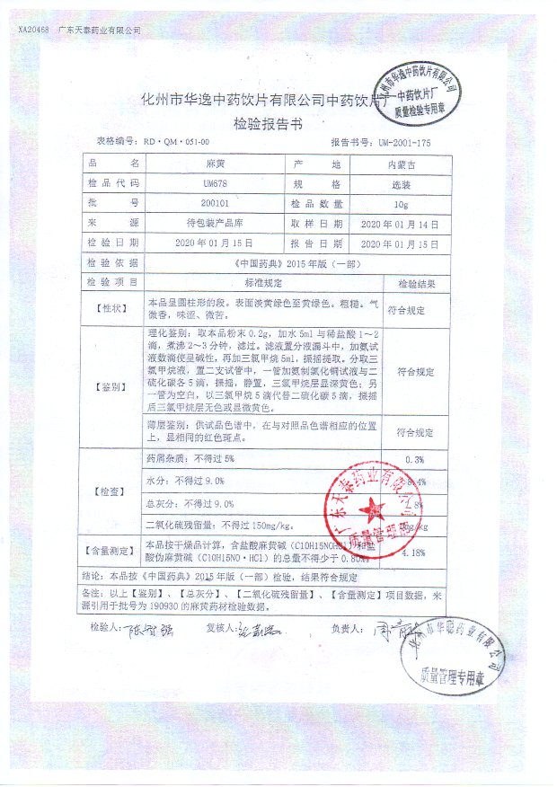 药检报告