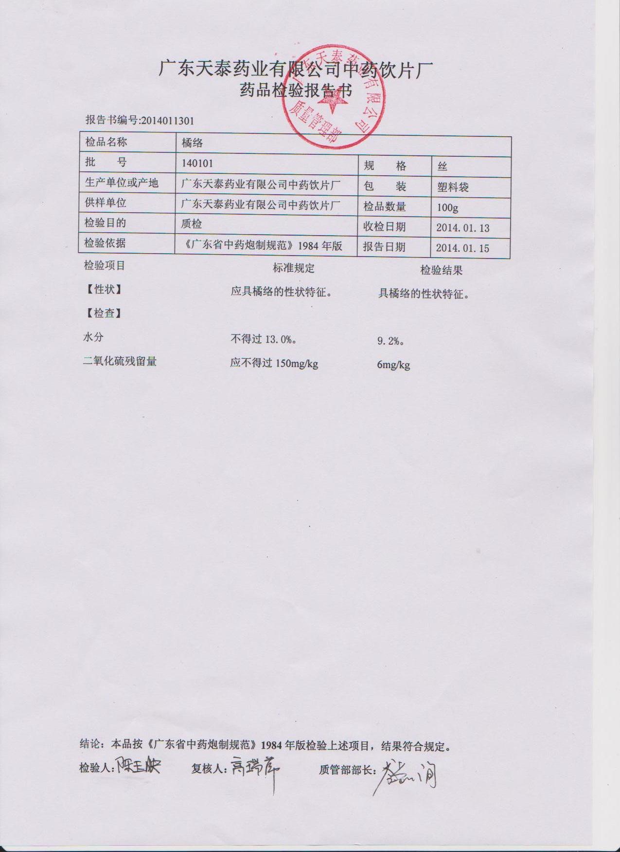 药检报告