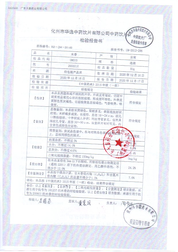 药检报告