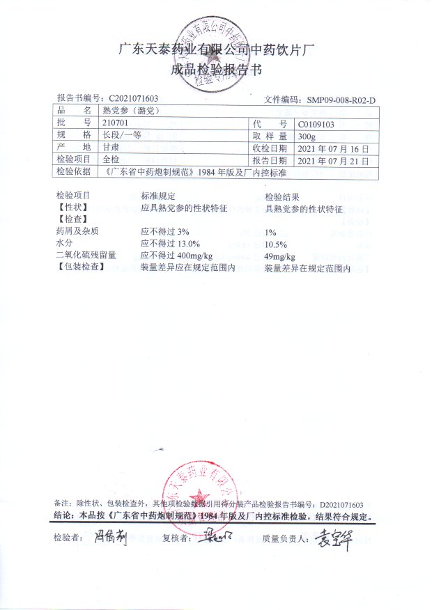 [熟党参(潞党)]熟党参(潞党)(长段/统)