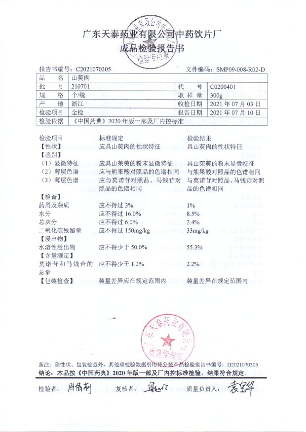 药检报告