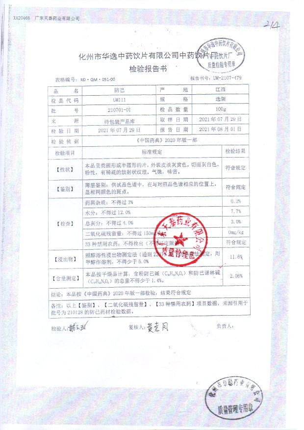 药检报告