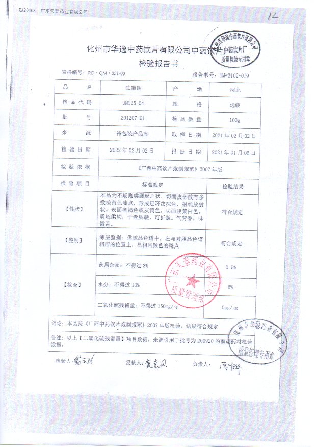 药检报告
