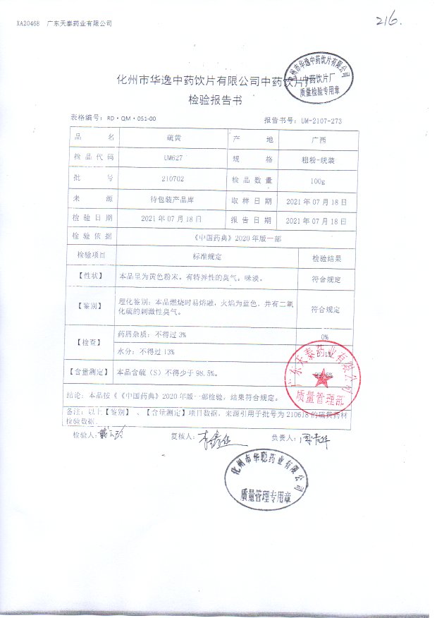 药检报告