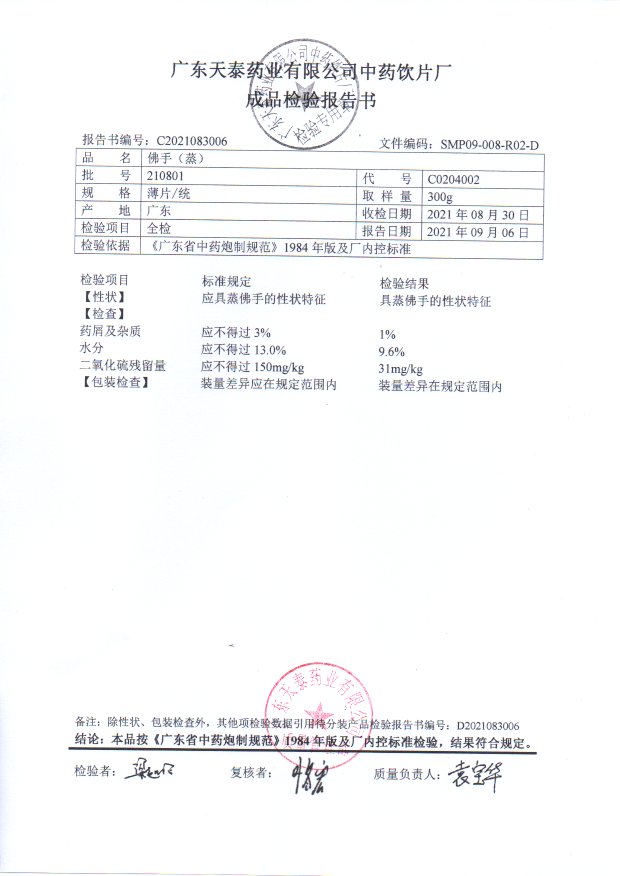 [佛手(蒸)]佛手(蒸)(薄片/统)