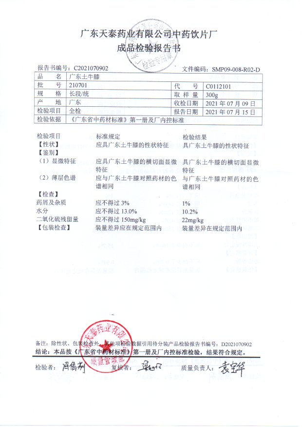 药检报告