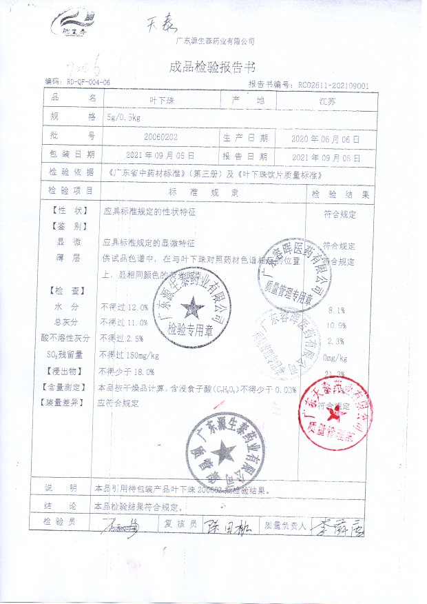 药检报告