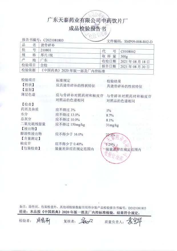药检报告