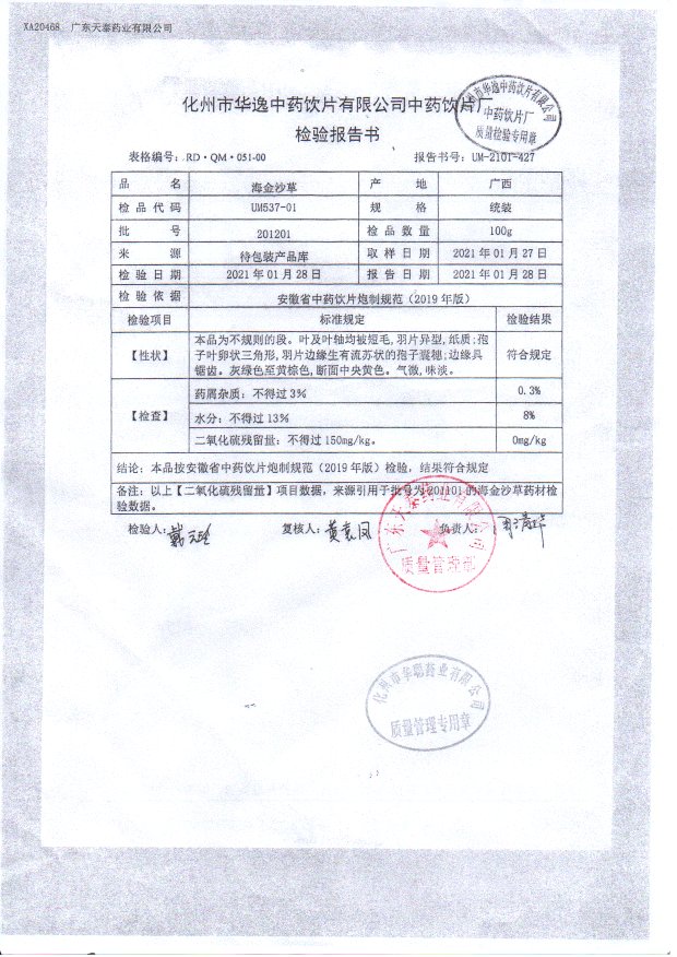 药检报告