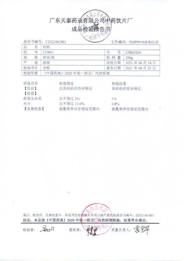药检报告