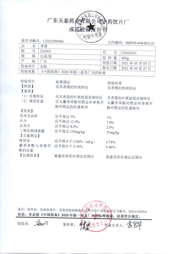 药检报告