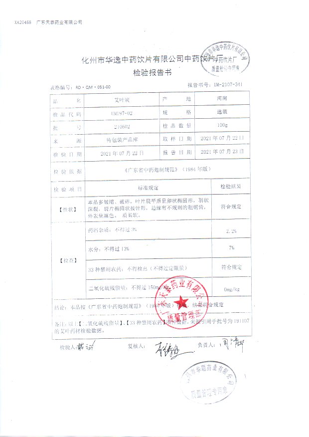 药检报告