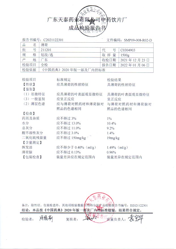 药检报告