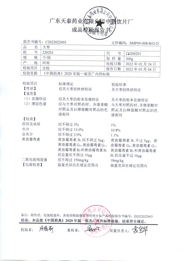药检报告