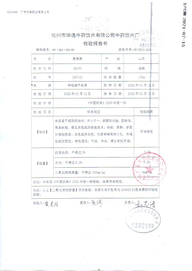 药检报告