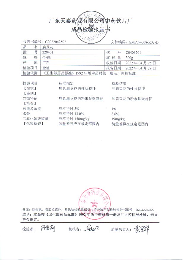 药检报告