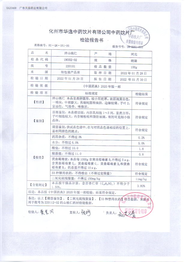 药检报告
