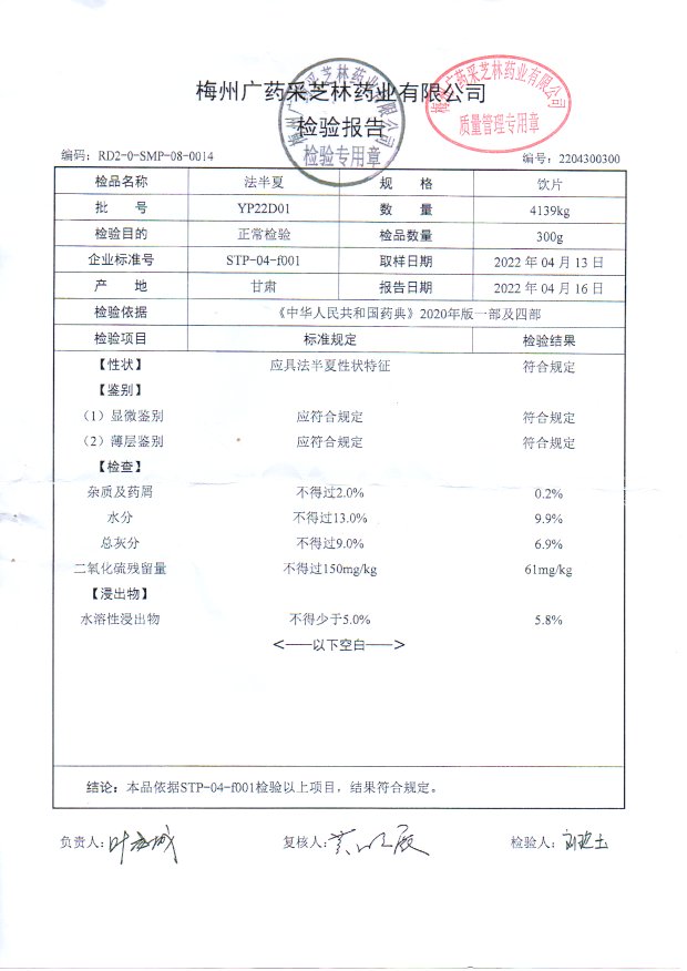 药检报告