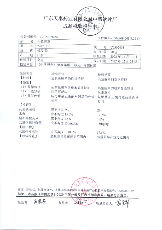 [干鱼腥草]干鱼腥草(长段/统)