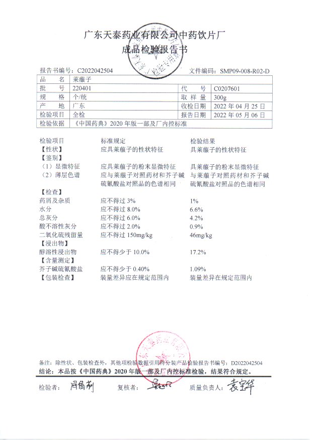 药检报告