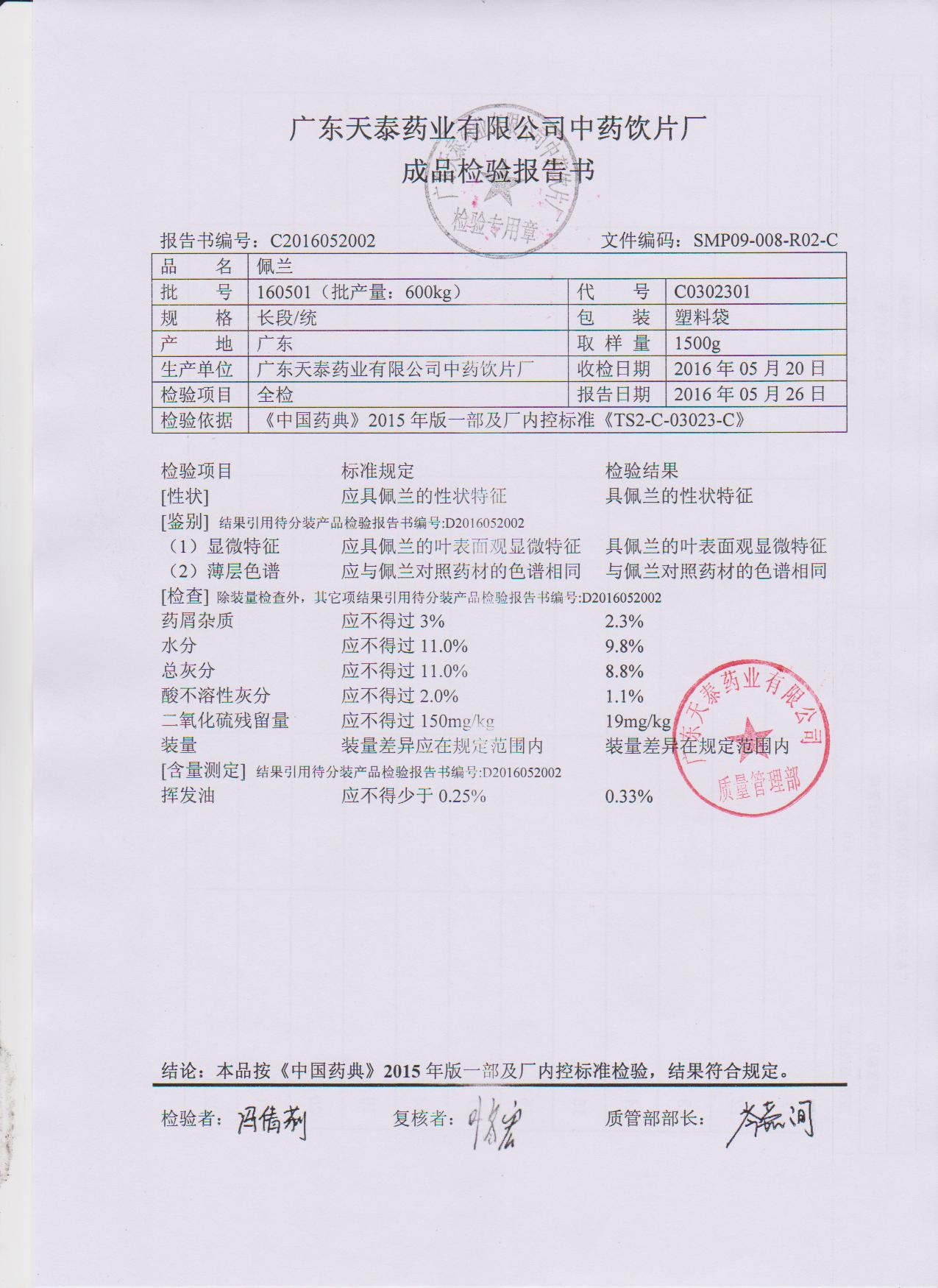 药检报告