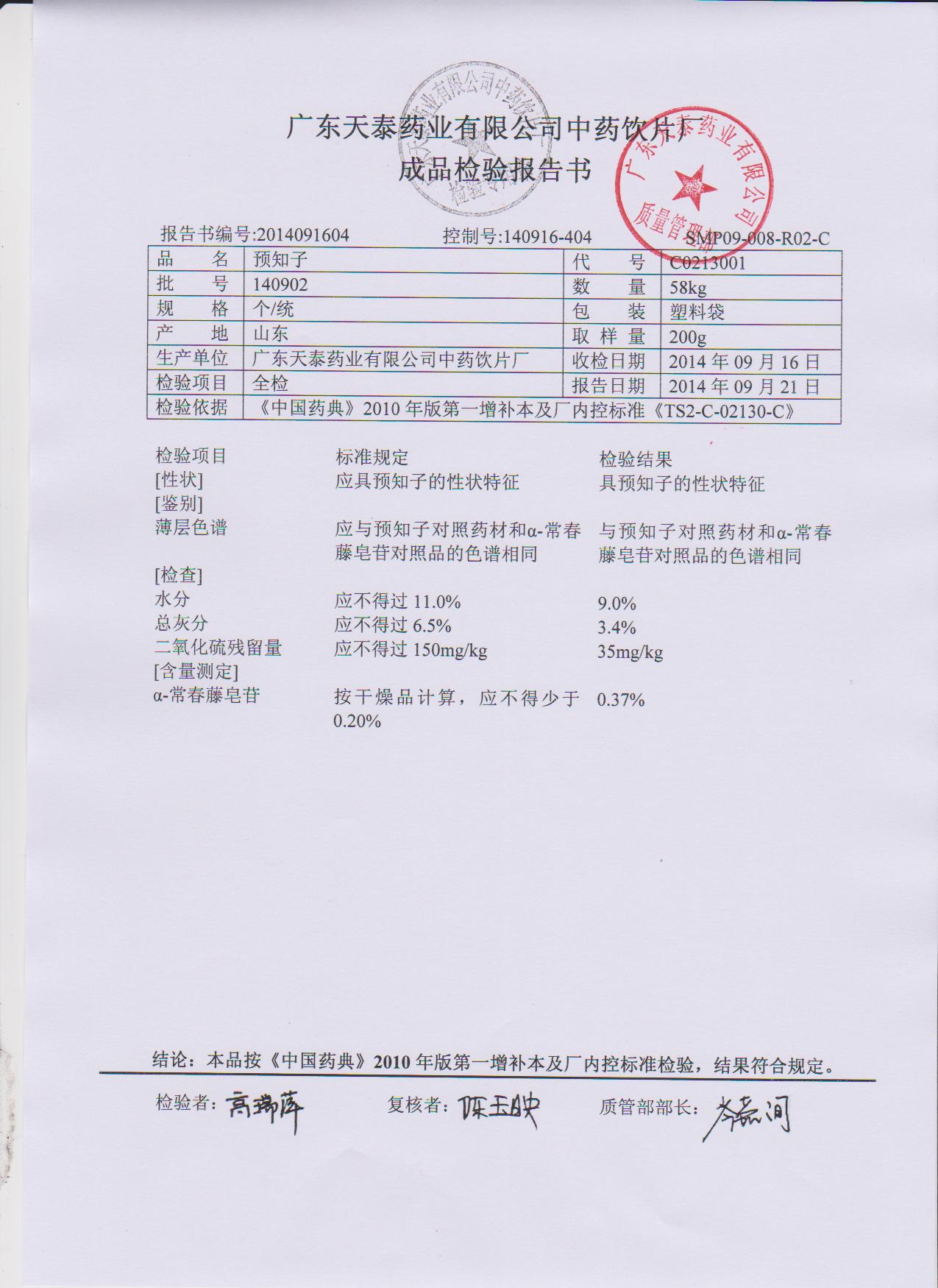 药检报告