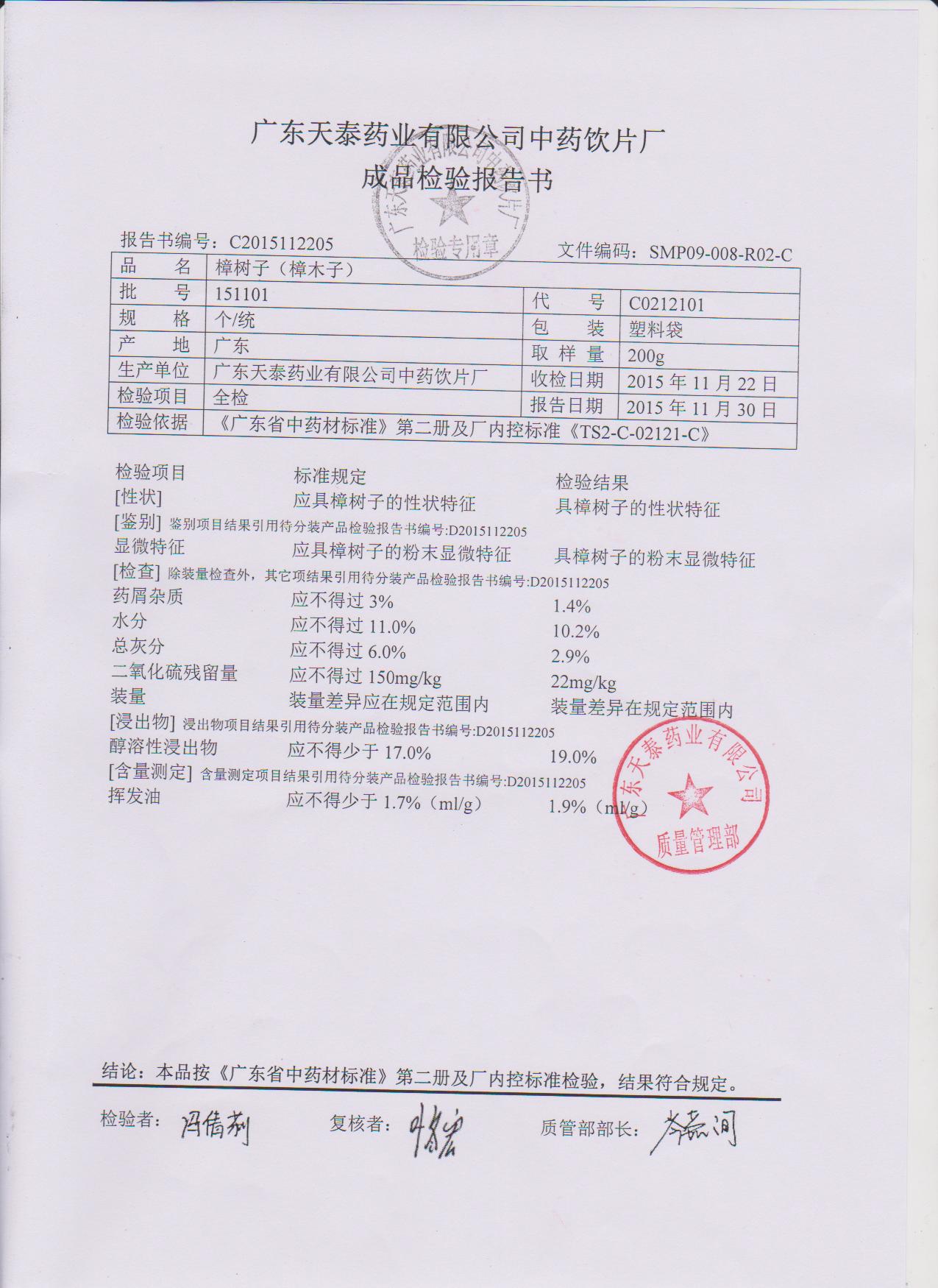 药检报告