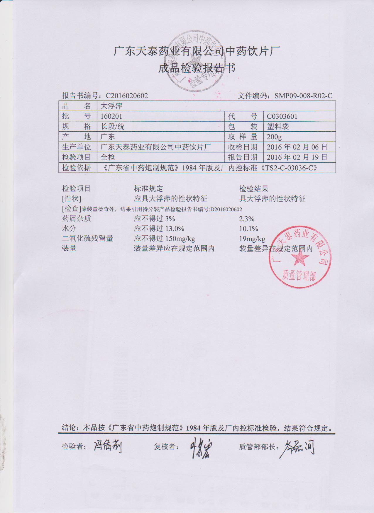 药检报告