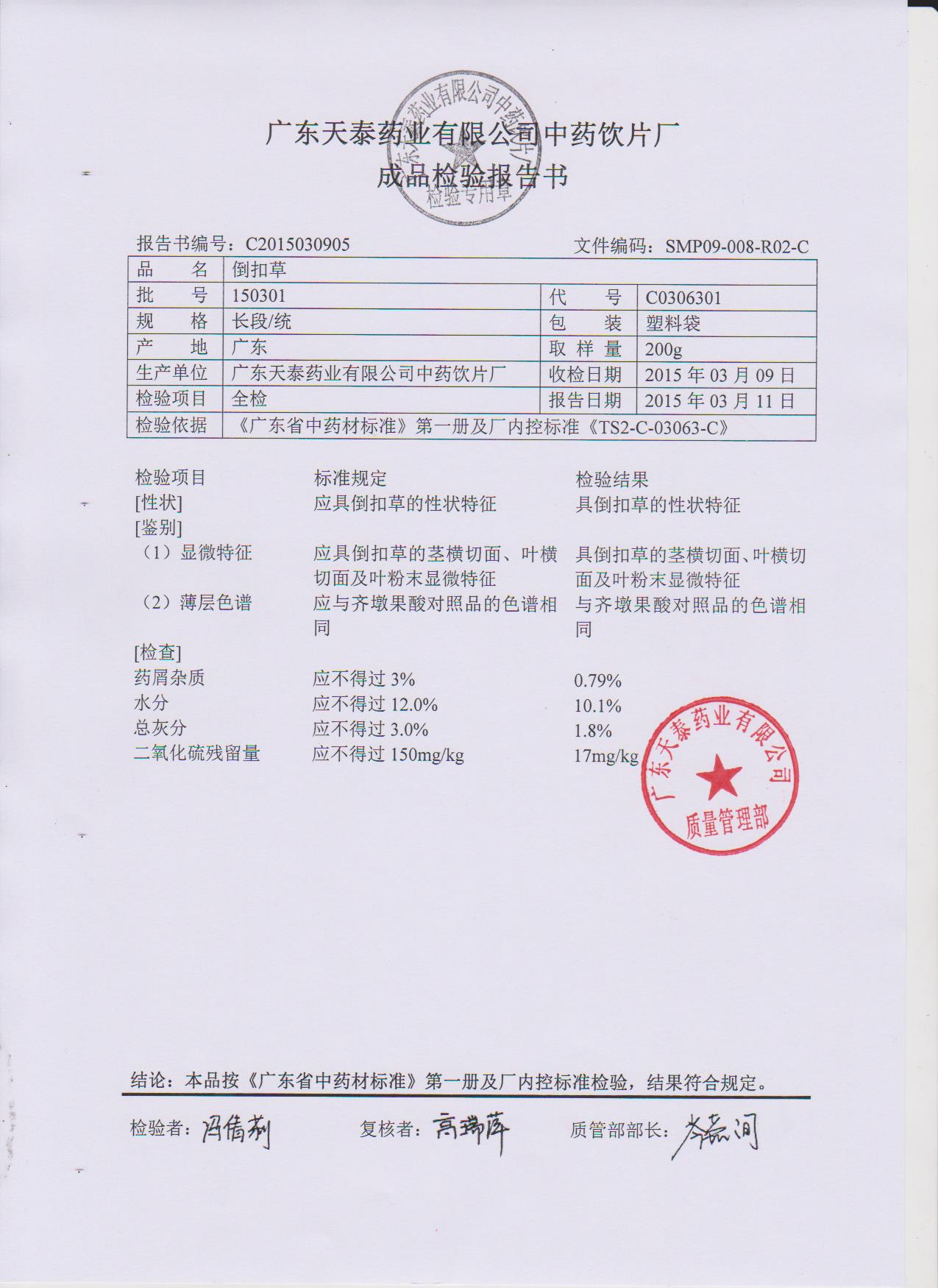 药检报告