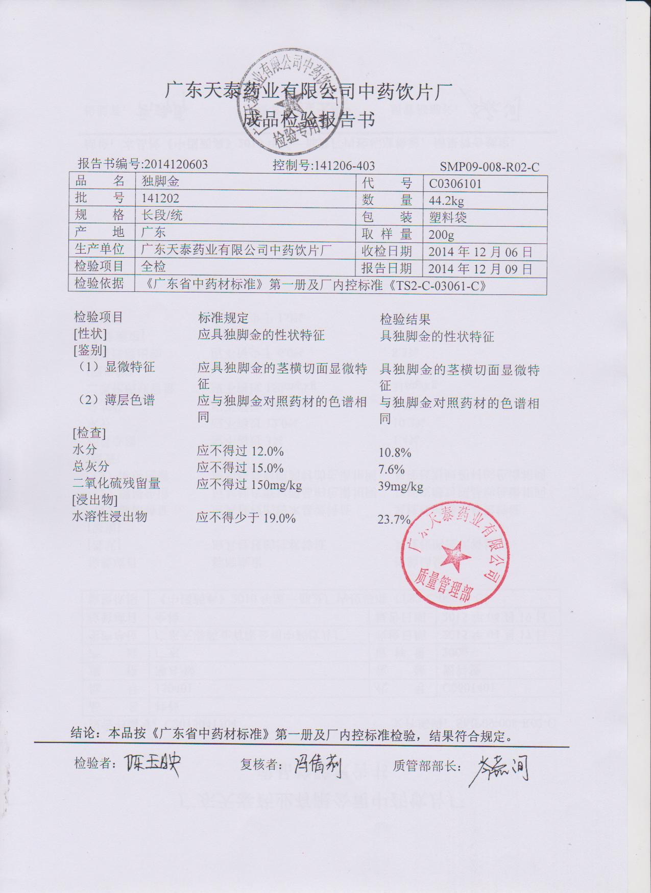 药检报告