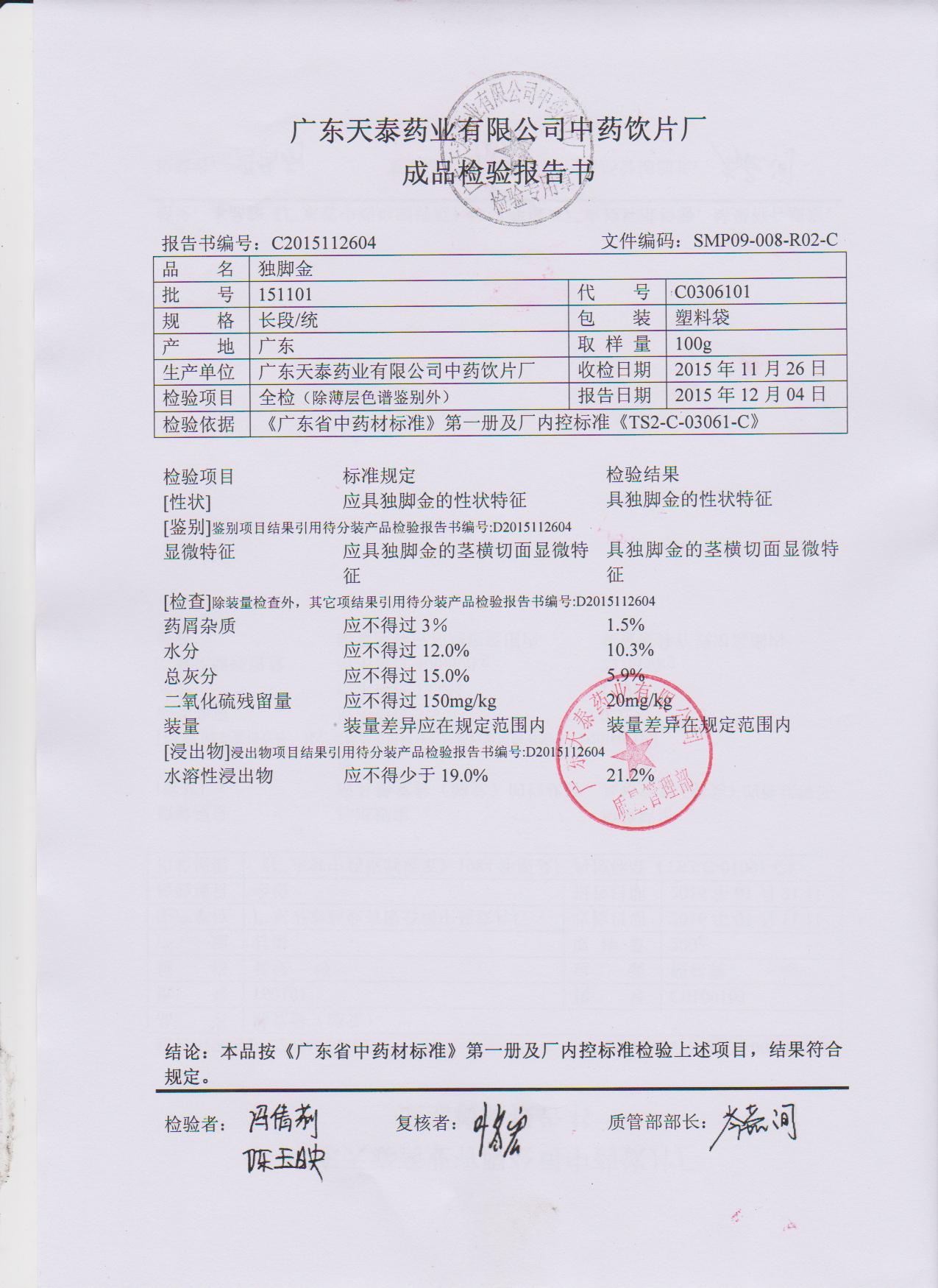 药检报告