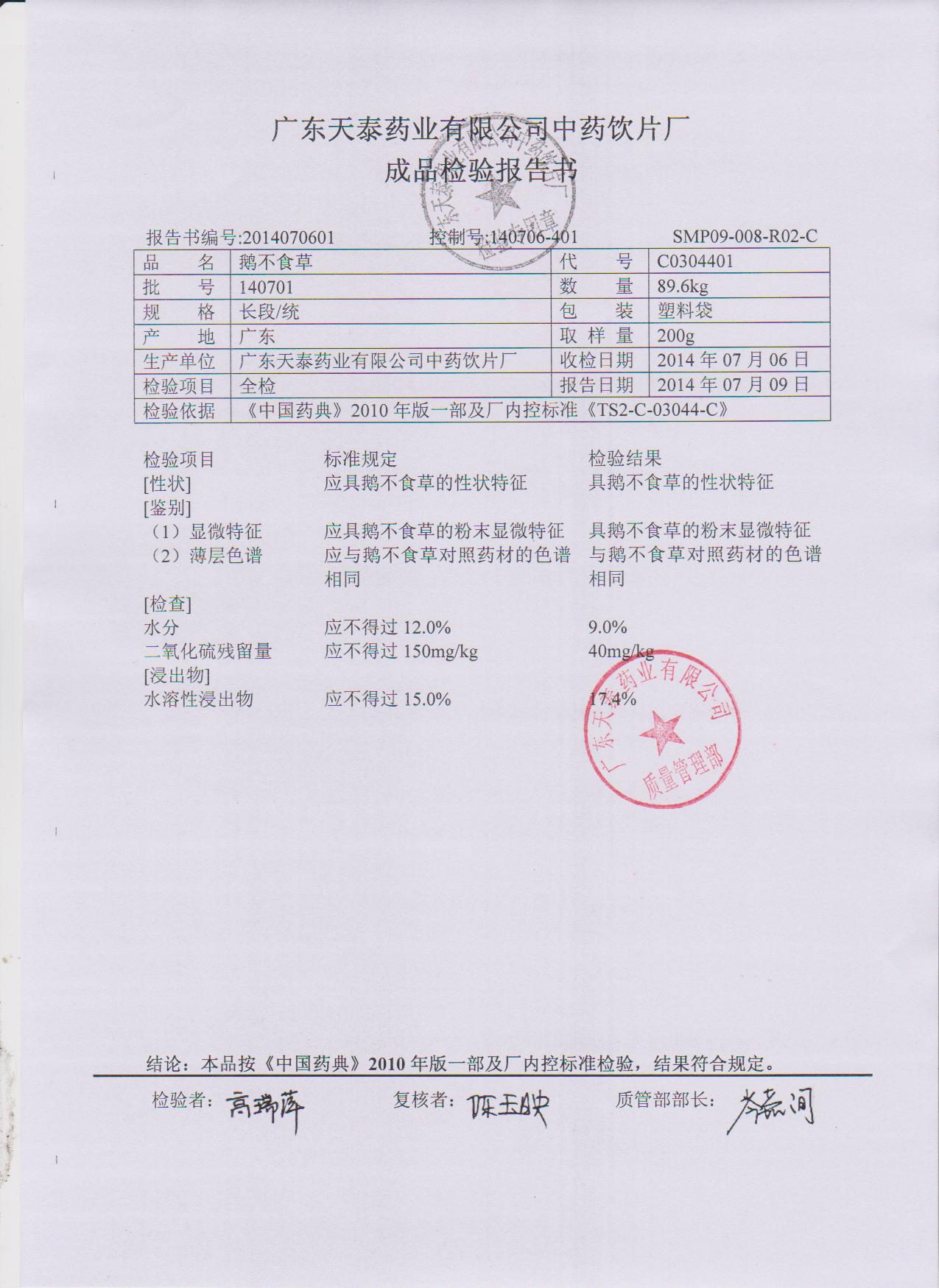 药检报告