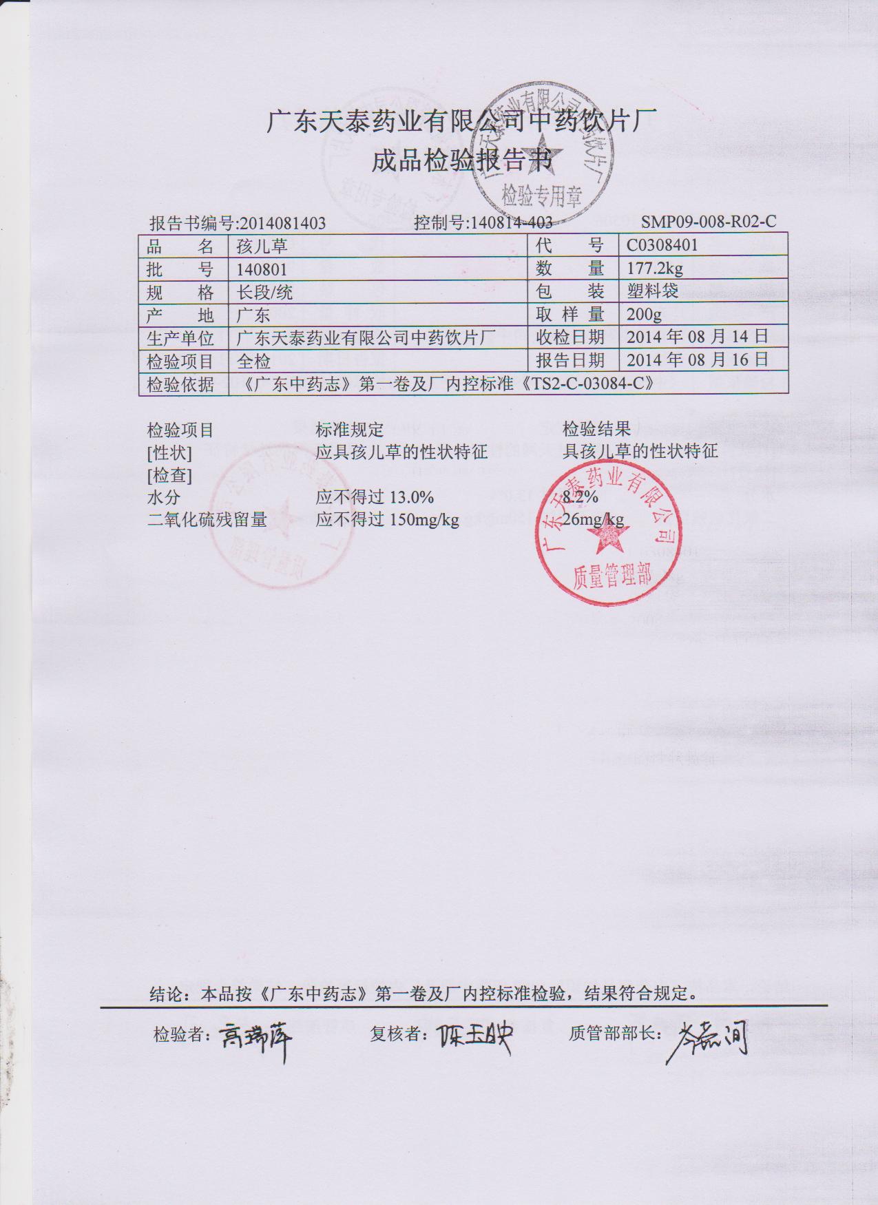 药检报告