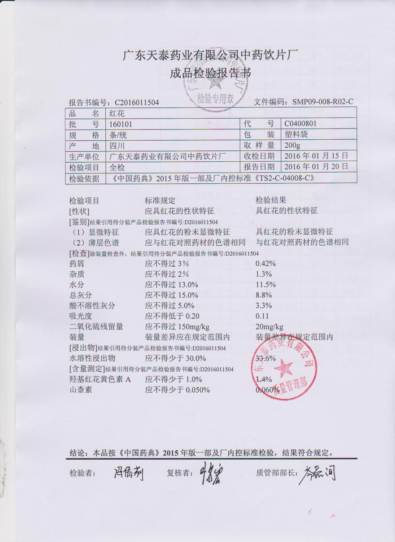 药检报告