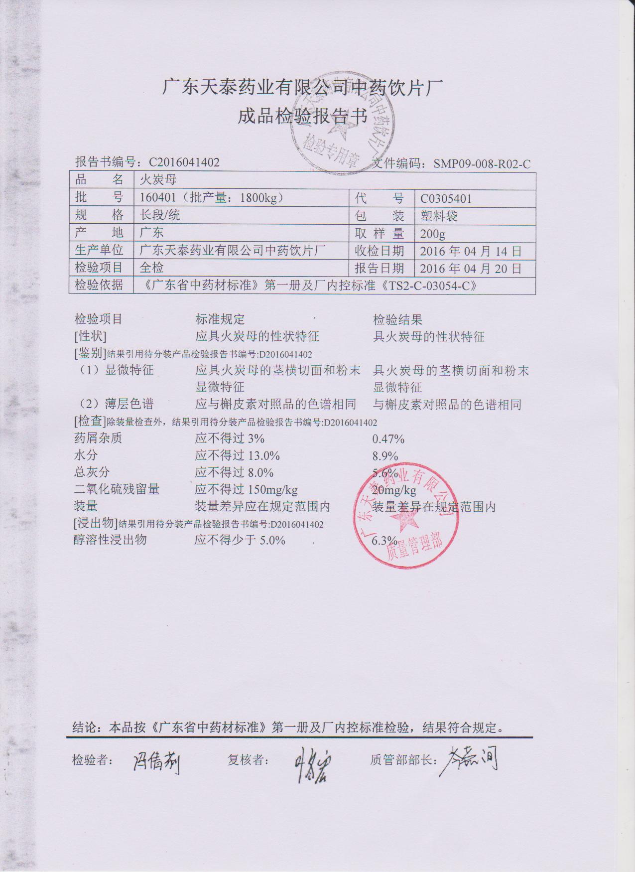 药检报告
