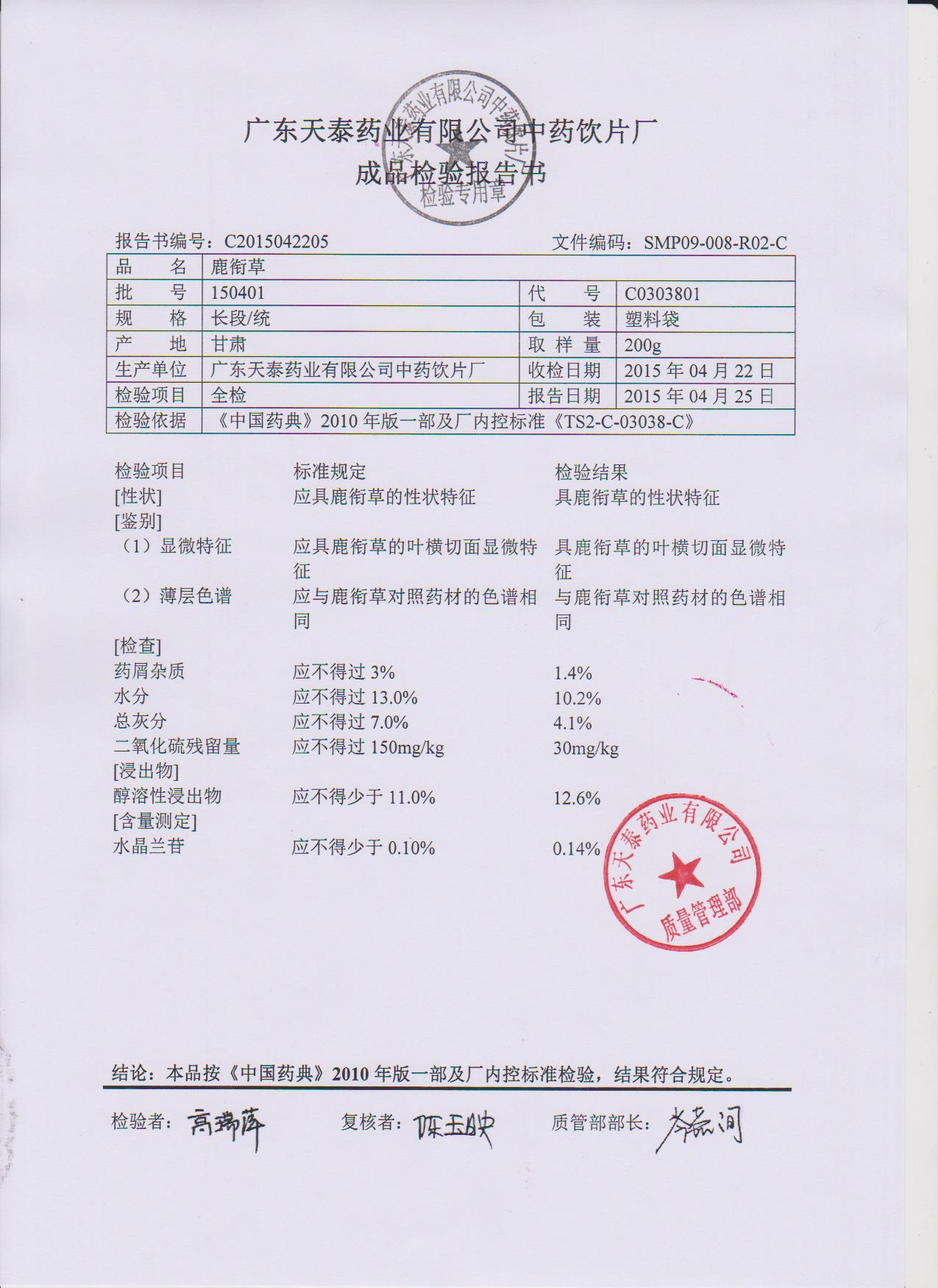 药检报告