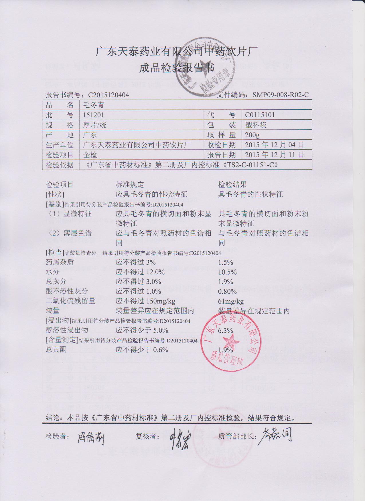 药检报告