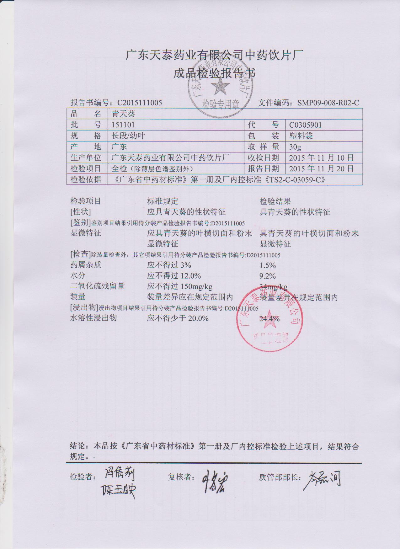 药检报告
