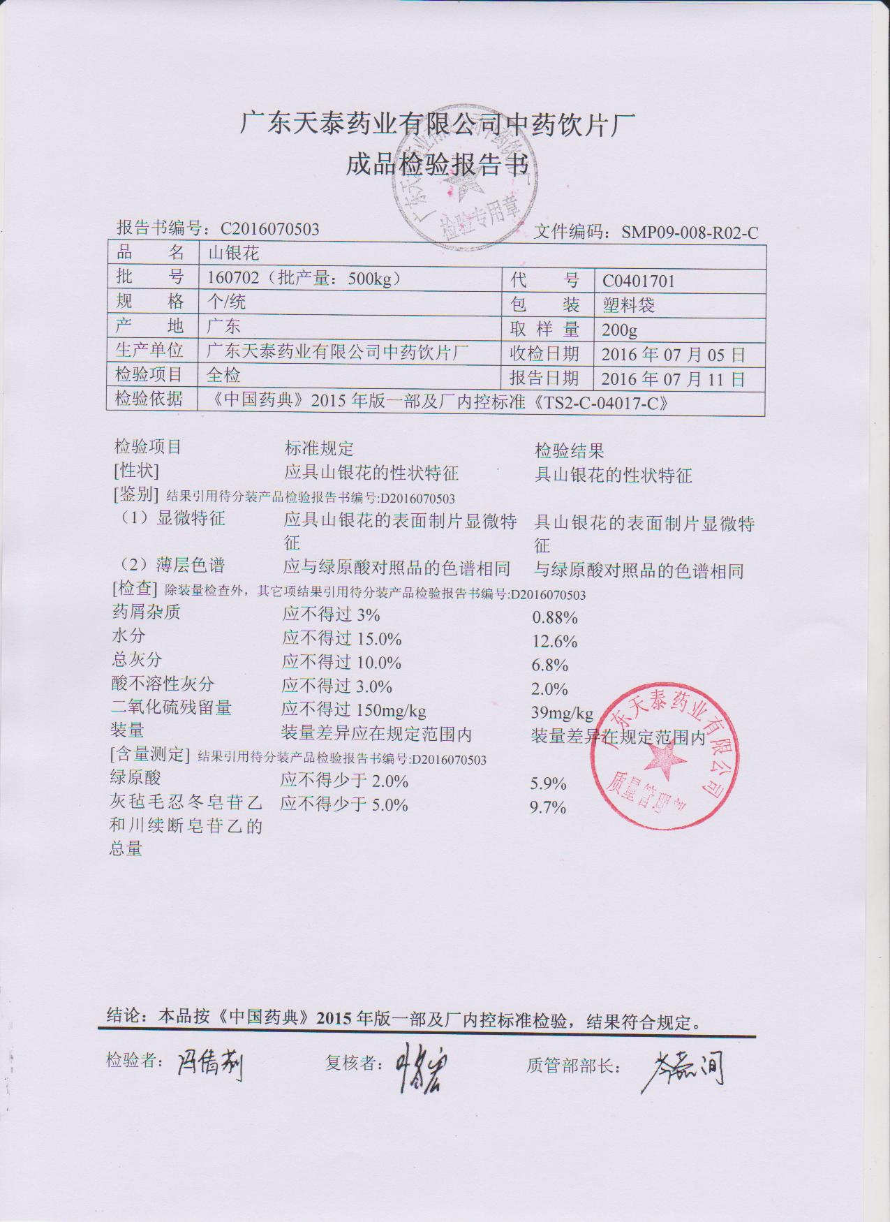 药检报告