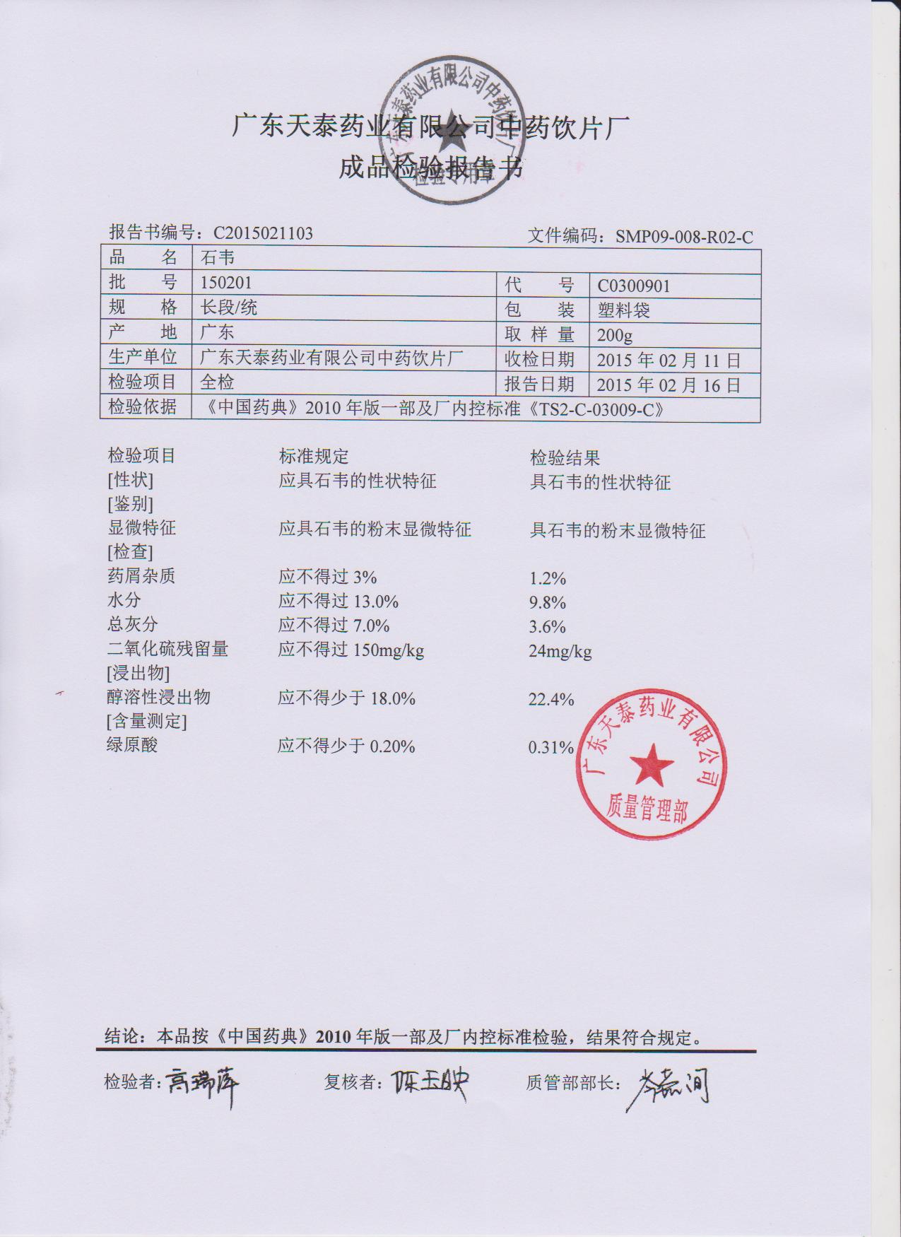 药检报告