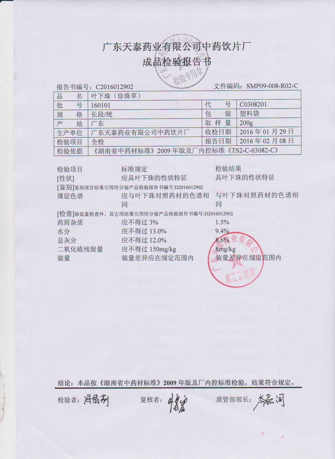 药检报告