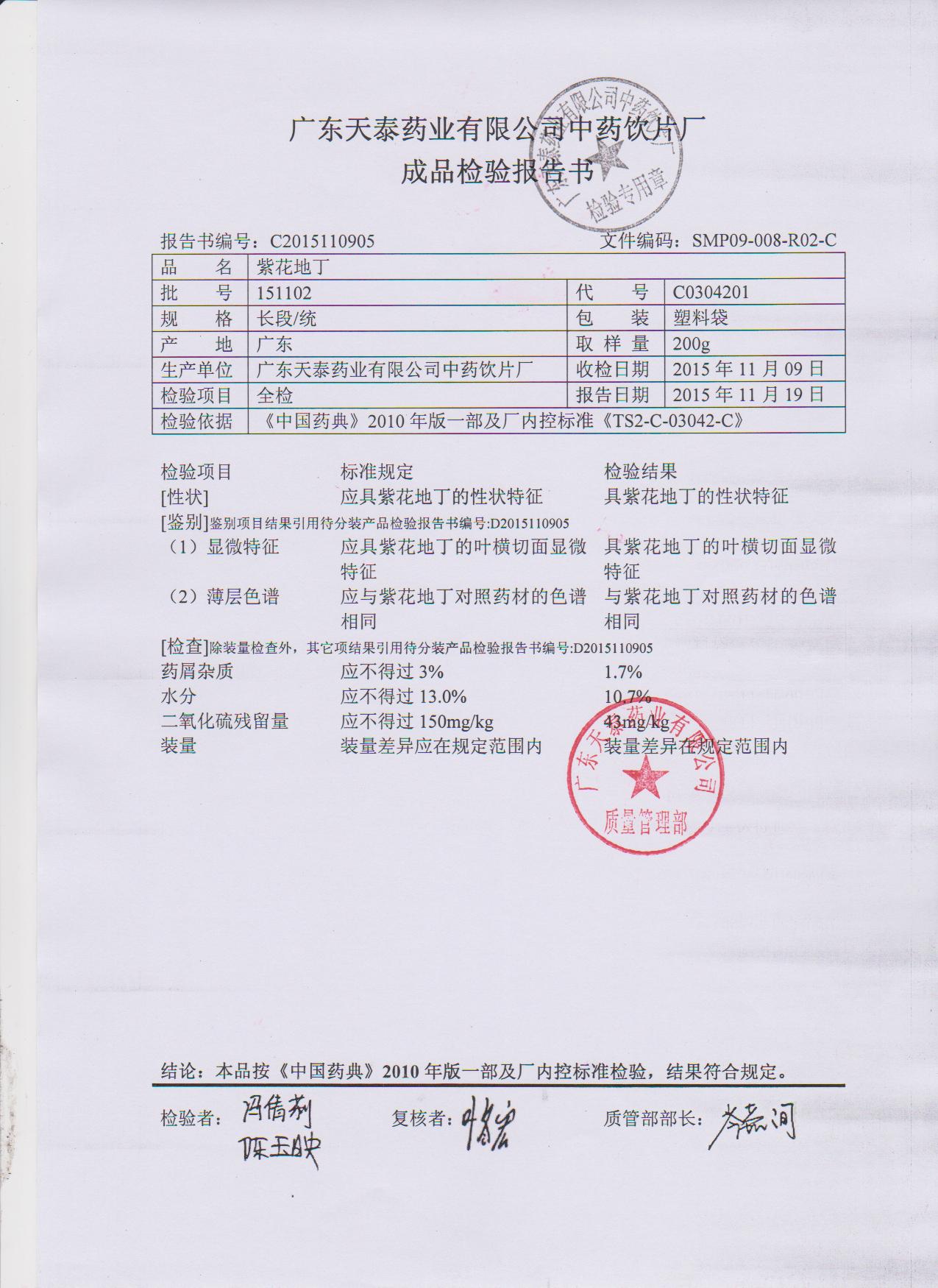 药检报告