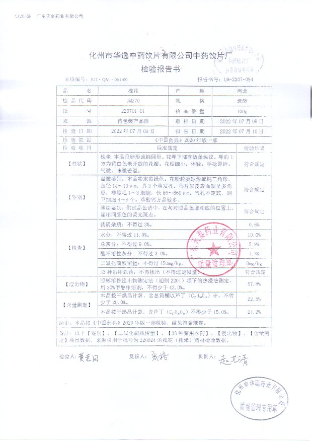 药检报告