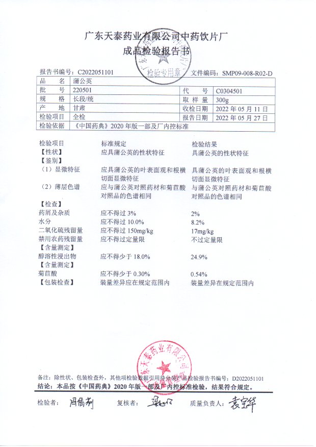 [蒲公英]蒲公英(长段/统)