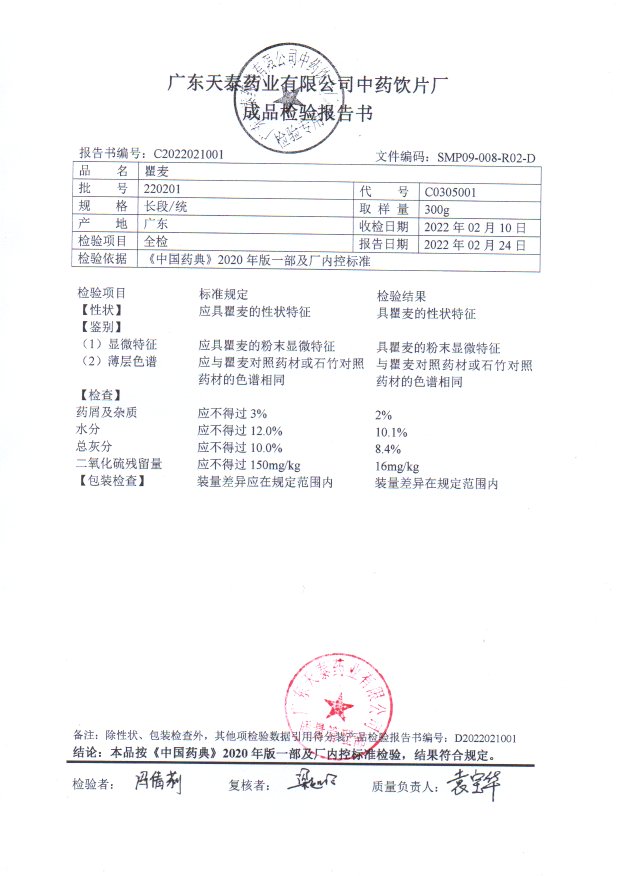 药检报告