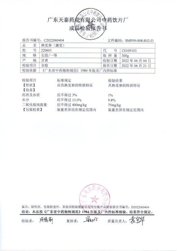 [熟党参(潞党)]熟党参(潞党)(长段/统)